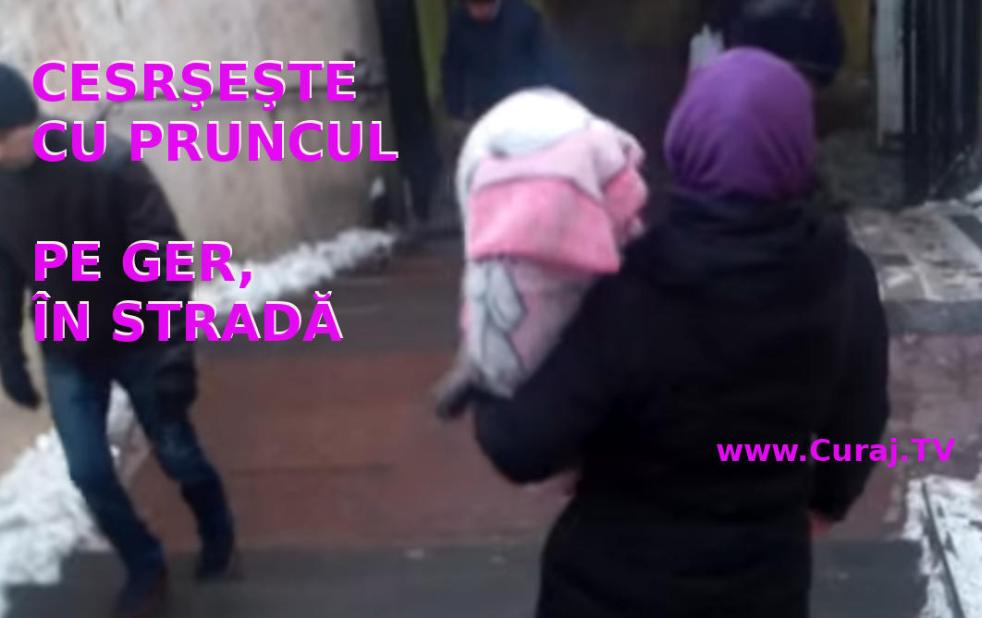 Cerşeşte pe ger cu pruncul în braţe