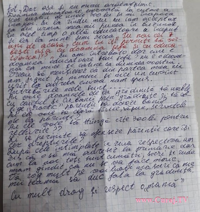 Ne scrie o femeie de la Răzălăi/Pepeni, Sîngerei, unde nu au niciun metru de asfalt prin localitate și nici măcar drum pietruit pînă la grădiniță, dar unde se face chetă publică pentru centrala termică a Spitalului municipal nr. 1 din Chișinău. Ba mai mult, angajatele somează părinții să ”doneze” bani, după ce au fost obligați mai demult să aducă odată cu copiii la grădiniță și 300 MDL pentru rechizite, și săpun lichid, și șervețele, și scutece…