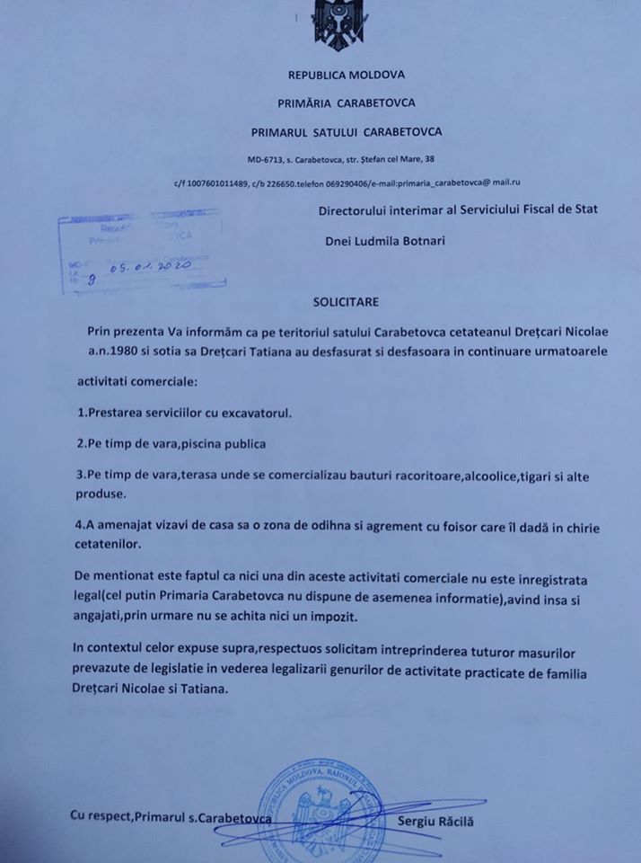 Rog atenție, in solicitare nu am cerut pedepsirea cuiva, am solicitat organelor Statului doar să întreprindă măsuri de LEGALIZARE a activităților economice pentru că toți noi suntem egali în fața legii, inclusiv Familia lui Drețcari Nicolae și toți trebuie sa activam în condițiile legii și sa achitam impozite.