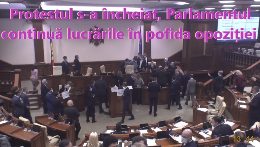 Parlamentul continuă lucrările în pofida protestului și a opoziției